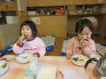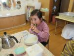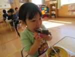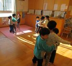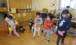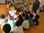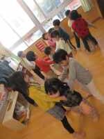 クラスでわらべうたで遊んだり、節分のお話の紙芝居を読んでもらったりしてから