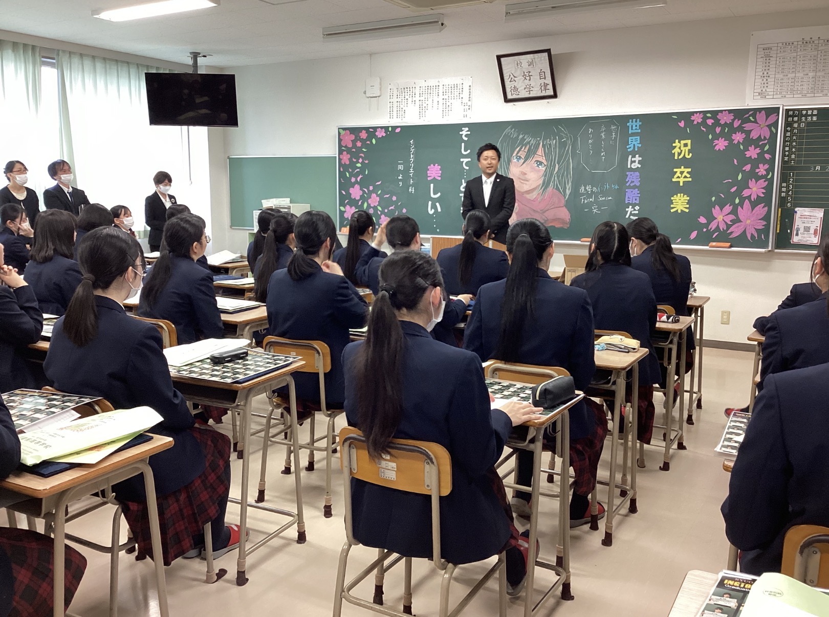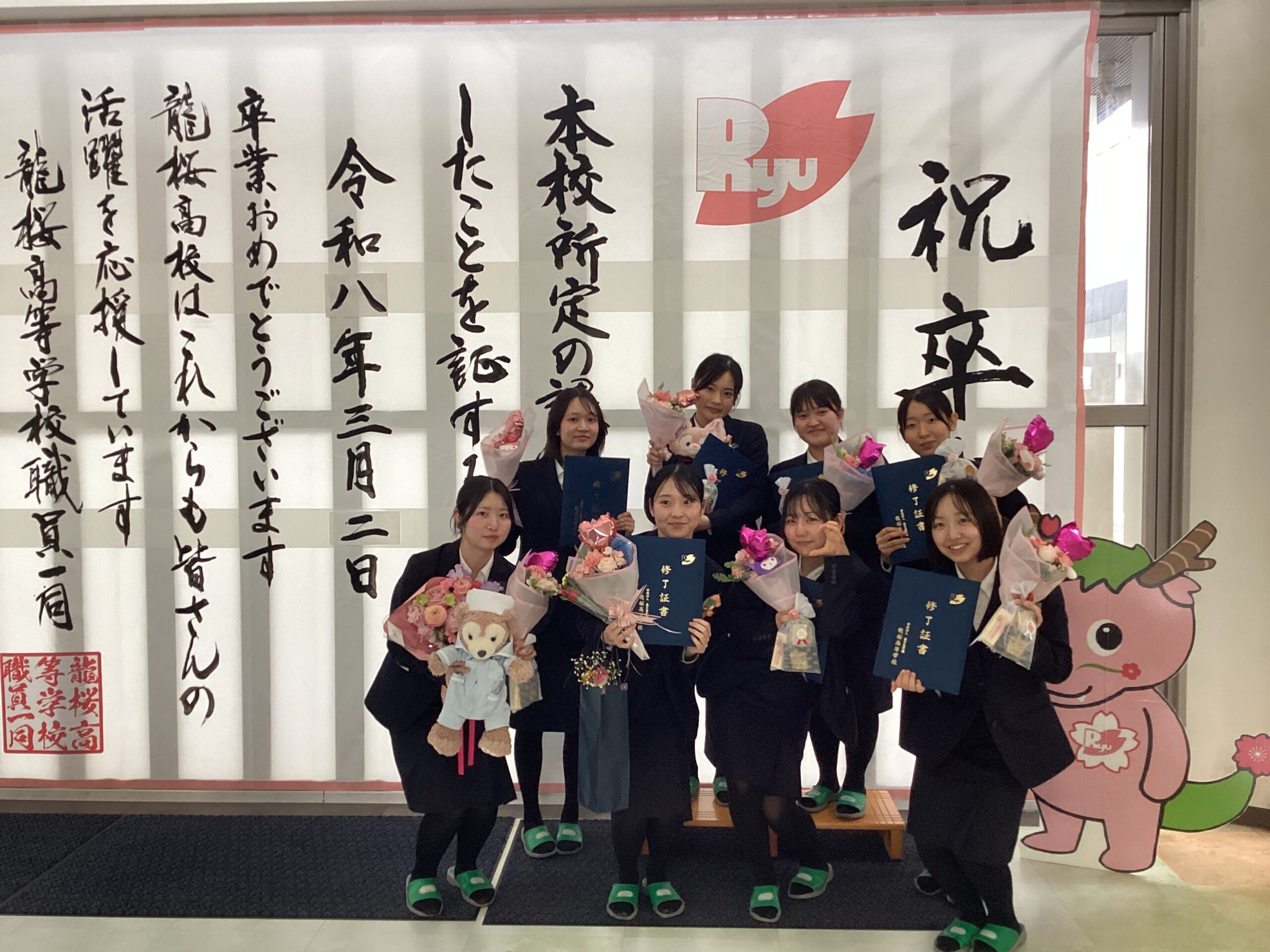 祝 卒業式・修了式 2026.03.02 本日(3月2日)、晴れやかな中にも厳粛な雰囲気で令和7年度 卒業式・修了式を挙行しました。 今年度は、高校生131名・看護学科専門課程生64名・保育専攻科生3名の計198名が龍桜高等学校を巣立ちました。 卒業式後は、各クラスで最後のLHRが行われました。 卒業生・修了生の皆さん、卒業・修了おめでとうございます。皆さんの今後更なる活躍を心から応援しています。 Screenshot